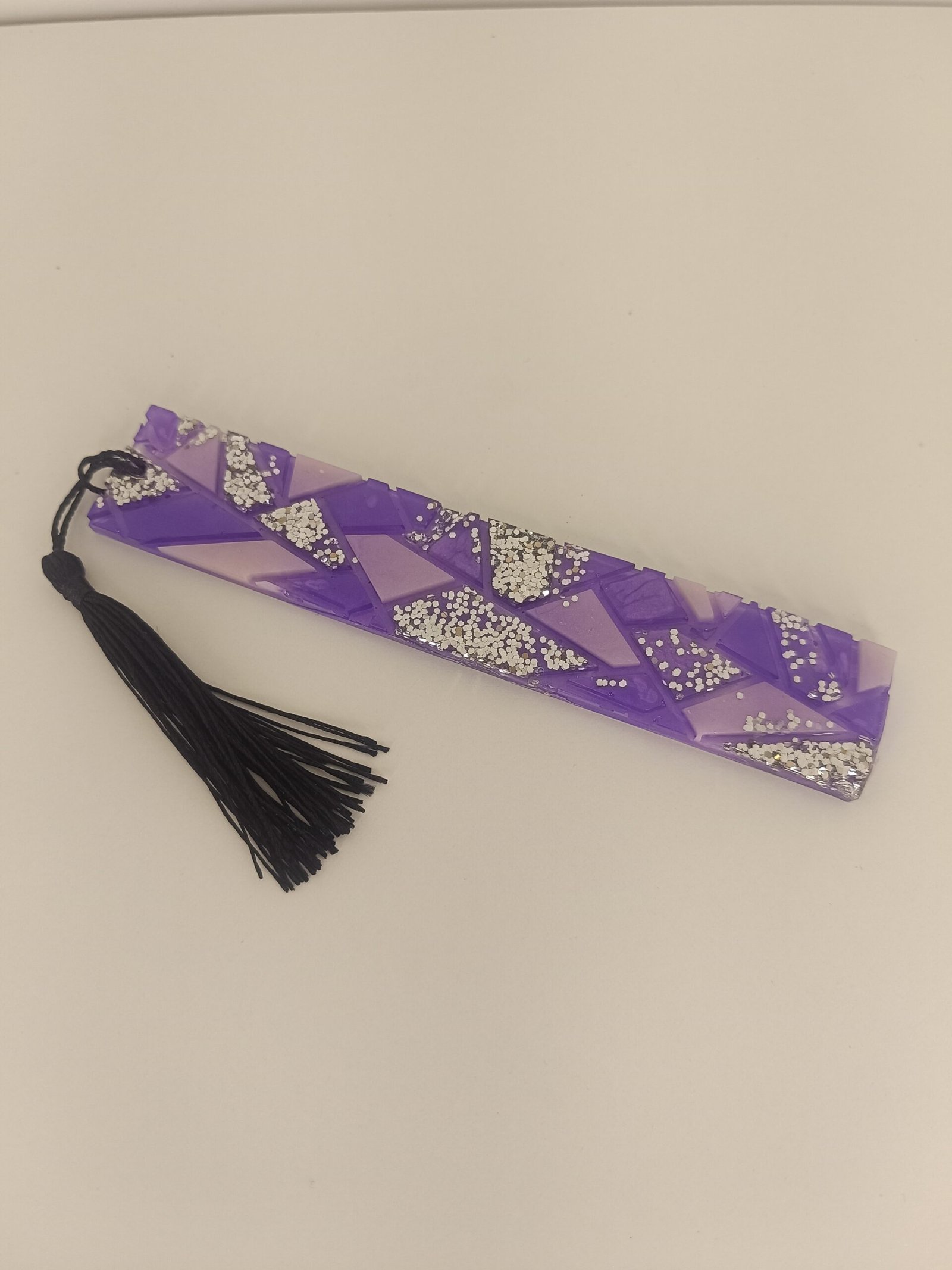 Découvrez notre marque page aux nuances de violet foncé et violet clair, conçu pour apporter une touche d’élégance à votre lecture. Avec ses paillettes argentées scintillantes, ce marque page est non seulement fonctionnel mais aussi un véritable bijou pour vos livres.